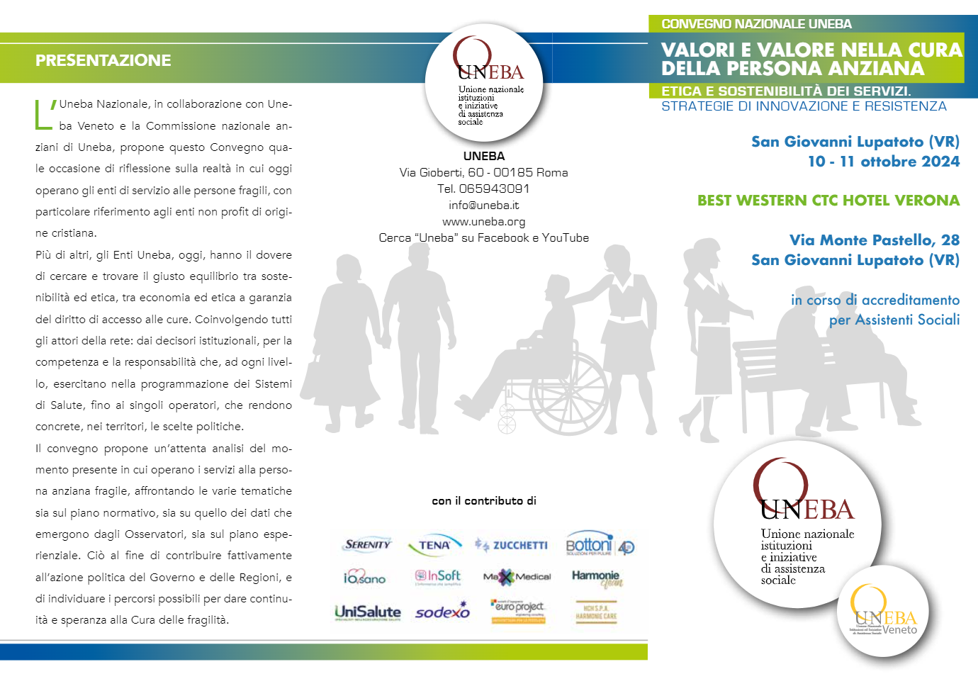 “Valori e valore nella cura della persona anziana – Etica e sostenibilità dei servizi, strategie di innovazione e resistenza” è il convegno Uneba in programma al San Giovanni Lupatoto, vicino a Verona, giovedì 10 pomeriggio e venerdì 11 ottobre mattina 2024.