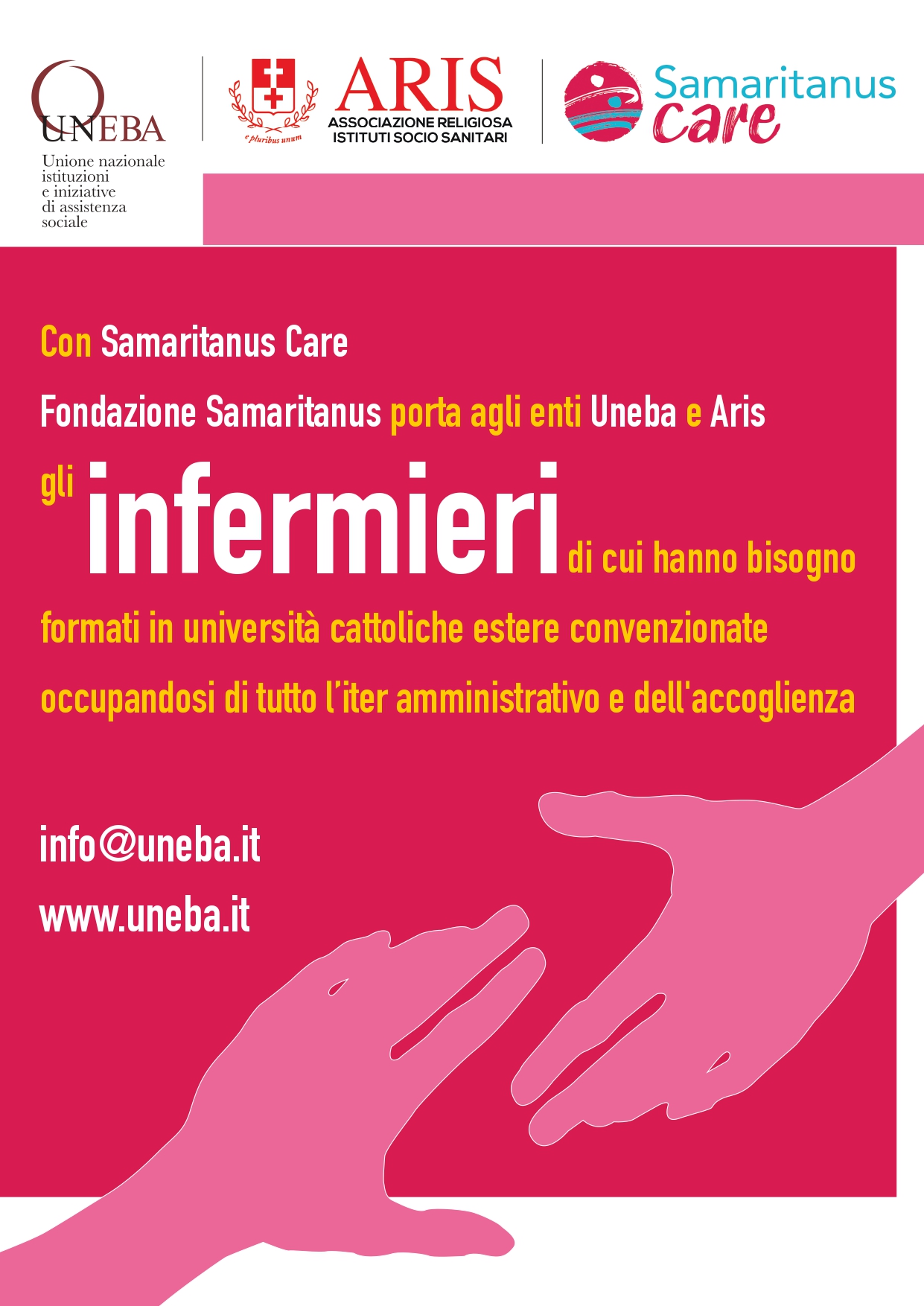Venerdì 17 alle 12 a Palazzo Grazioli a Roma conferenza stampa di presentazione di Samaritanus Care, progetto per l’inserimento nelle strutture sanitarie e sociosanitarie associate ad Aris o Uneba, di infermieri che hanno conseguito la laurea in istituzioni cattoliche in Africa, America, Asia.